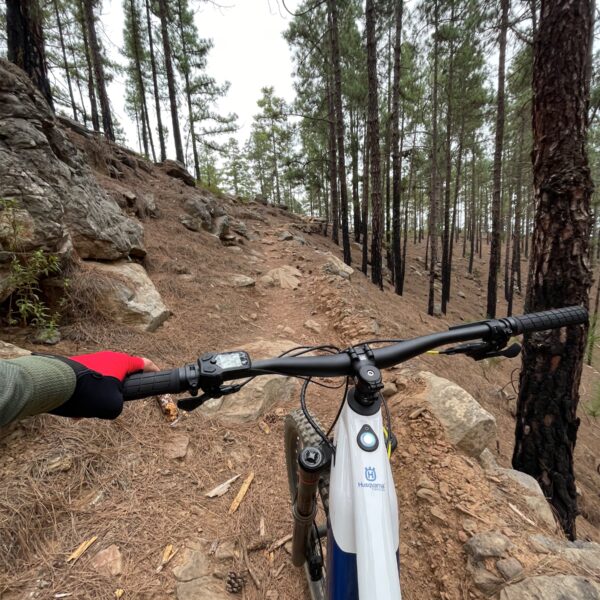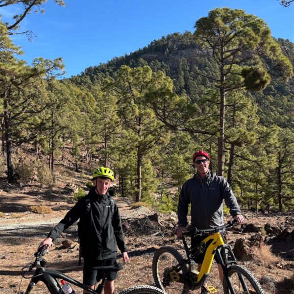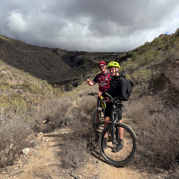 Get ready for an adventure! Our ride begins at around 2180 meters above sea level, starting from the scenic Las Lajas camping site. We'll kick off with a downhill section that is thrilling and quite fast, weaving through Canary pine forest. There'll be some speedy stretches, and you might even catch some airtime with a few jumps along the way. 😊 But hold on, there's a twist! After roughly 12 kilometres of speedy descent, we'll transition to an uphill climb. This part of the journey gets a bit rocky, with a mix of stones, loose gravel, and firm soil under your tires. Once we conquer the climb, the ride continues on a stunning single-line trail that’ll keep the excitement alive. Expect a mix of jumps and a few technical sections that will test your skills and keep your heart racing! The trail takes us all the way down to around 300 meters above sea level, which means we’ll be descending nearly 2000 meters in total! Over the course of this 40-kilometer ride, you'll experience a bit of everything—speed, challenges, and some of the most breathtaking views imaginable. Get ready to enjoy the ride and soak in the stunning surroundings! 🚵♂️🌲🏔️