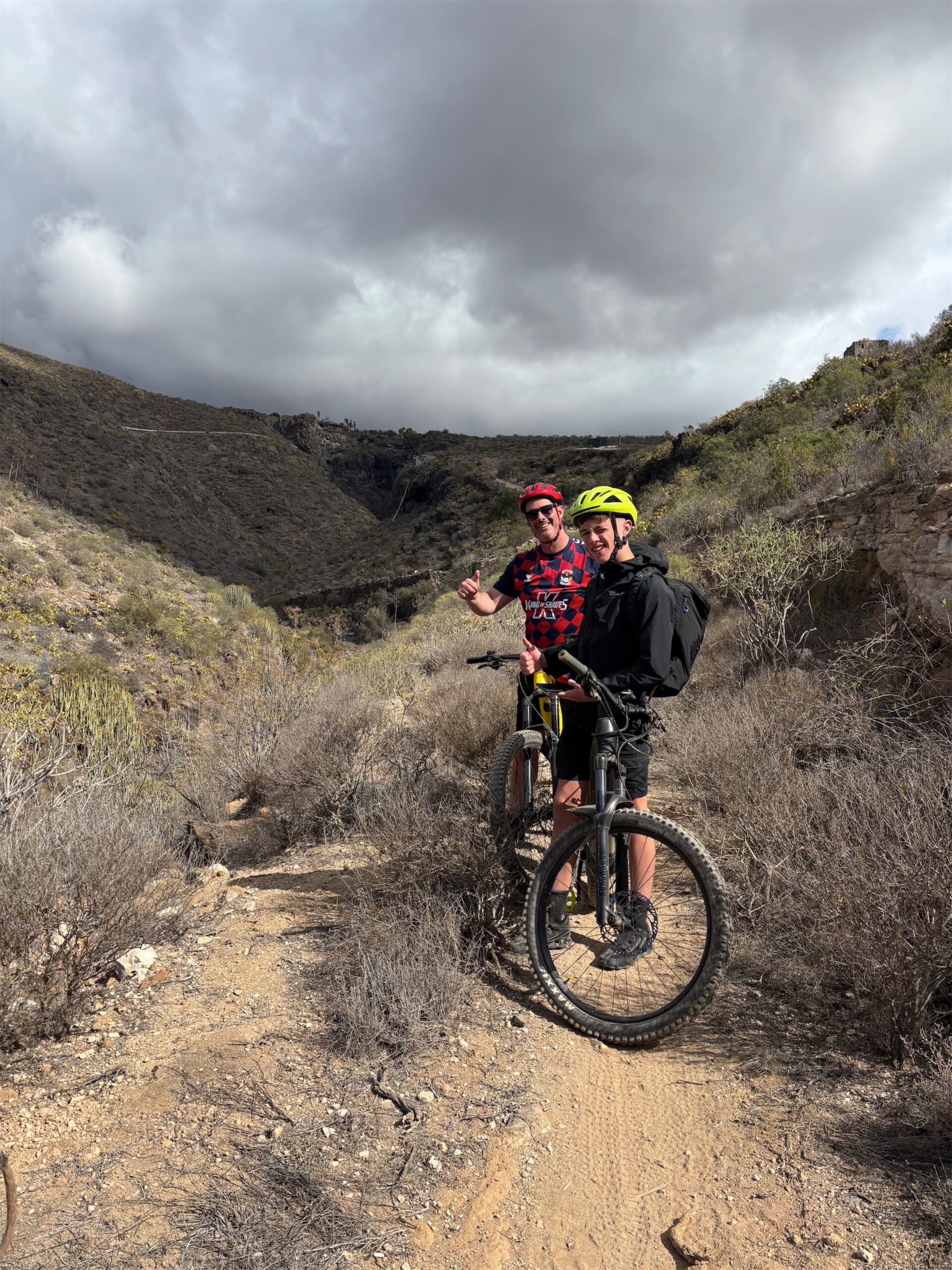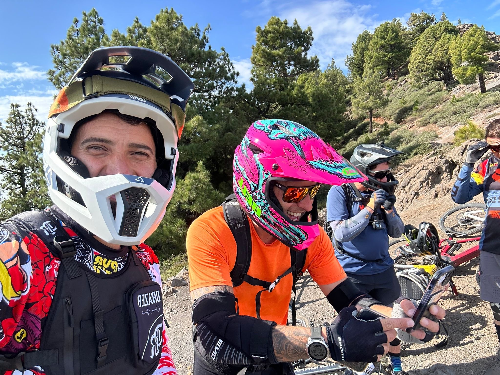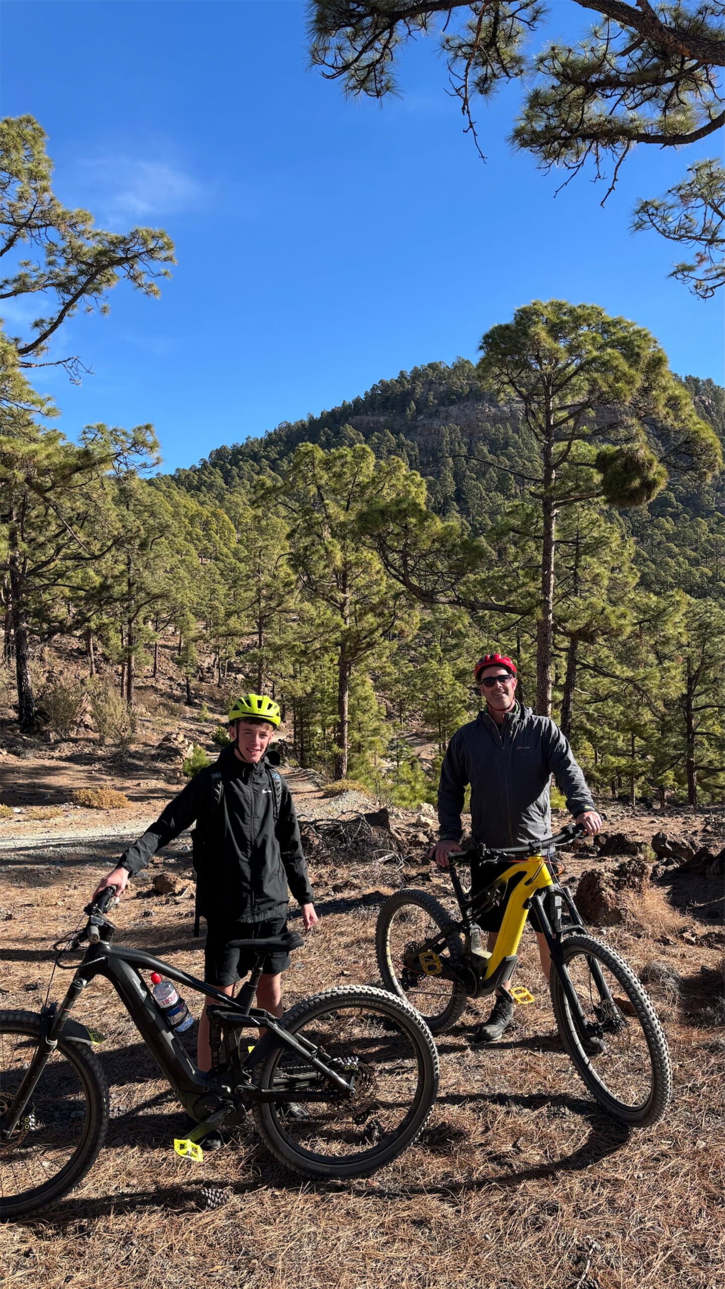 Get ready for an adventure! Our ride begins at around 2180 meters above sea level, starting from the scenic Las Lajas camping site. We'll kick off with a downhill section that is thrilling and quite fast, weaving through Canary pine forest. There'll be some speedy stretches, and you might even catch some airtime with a few jumps along the way. 😊 But hold on, there's a twist! After roughly 12 kilometres of speedy descent, we'll transition to an uphill climb. This part of the journey gets a bit rocky, with a mix of stones, loose gravel, and firm soil under your tires. Once we conquer the climb, the ride continues on a stunning single-line trail that’ll keep the excitement alive. Expect a mix of jumps and a few technical sections that will test your skills and keep your heart racing! The trail takes us all the way down to around 300 meters above sea level, which means we’ll be descending nearly 2000 meters in total! Over the course of this 40-kilometer ride, you'll experience a bit of everything—speed, challenges, and some of the most breathtaking views imaginable. Get ready to enjoy the ride and soak in the stunning surroundings! 🚵♂️🌲🏔️